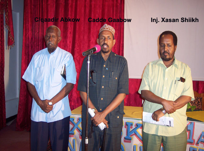 Axad,July 16, 2006(HOL): Munaasabad lagu xusayay sanadguuradii koowaad ee ka soo wareegatay markii ay gacan ka gar-daran Muqdisho ku dhisay C/qaadir Yaxye Cali ayaa maanta lagu qabtay Hotelka Naasa-Hablood ee magaalada Muqdisho, iyadoo xuskaasina ay ka qeybgaleen mas'uuliyin ka socday Bulshada Rayidka Soomaaliyeed.