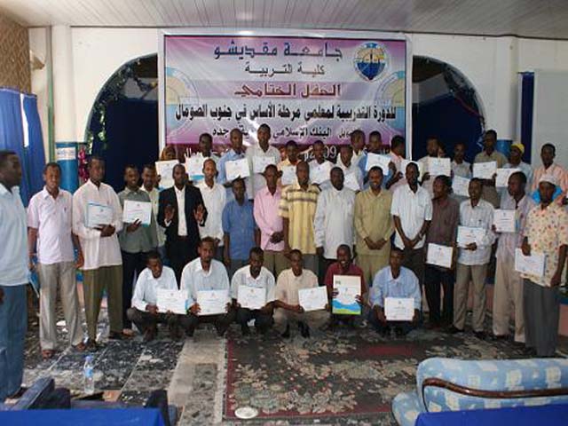 Sabti, July 18, 2009(HOL): Macallimiin tiradoodu gaarayso 350 oo ka kala socday gobollada dalka gaar ahaan kuwa koonfureed ayay jaamacadda Muqdisho u soo gabagabeysay tababar u socday muddo hal todobaad ah iyagoo la guddoonsiiyay shahaadooyinka.