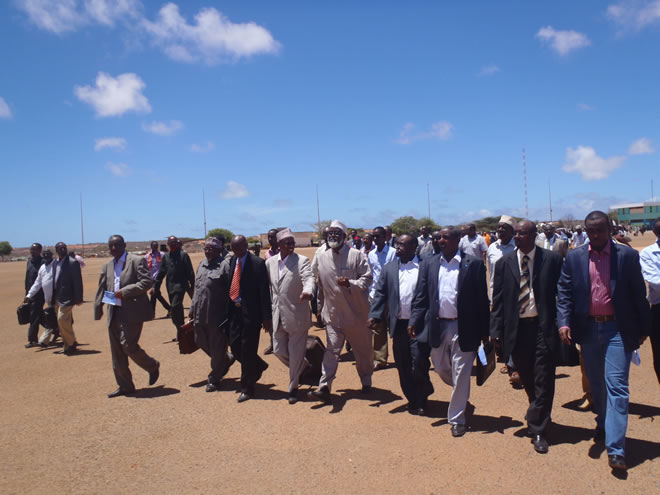 Arbaco, 03 April, 2013 (HOL) :- Ku dhawaad ilaa 44 Xildhibaan oo ka tirsan golaha baarlamanka Soomaaliya ayaa maanta kasoo dagay garoonka caalamiga ah ee magaalada Kismaayo iyadoona ay halkaasi si diiran ugu soo dhaweeyeen masuuliyiinta maamulka KMG ee Kismaayo.
