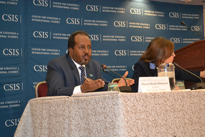 Madaxweyne Xasan Sheekh Maxamuud ayaa maanta ka khudbeeyay xaruunta CSIS ee magaalada Washington. Isaga oo warbixin ka bixiyey xaaladda guud ee dalka, wuxuuna si gaar ah uga hadlay xaaladaha ammaanka, isagoo xusay in ciidamada ammaanka ee dowladda Soomaaliya ay ku howlan yihiin sugidda ammaanka dalka, sidoo kalena wuxuu xusay in ay qaraar ka soo saareen wax ka qabashada dhibaatooyinka loo geysto dadka biri-ma-geydada ah, gaar ahaan haweenka oo dhibaatooyin badan oo uu kufsiga ka mid yahya loo geystay. Tallaabooyin arrinta kufsiga laga qaaday ayuu tusaale u soo qaatay in nin haweeney kufsaday la soo qabtay, sharciga la horgeeyay kaddibna la toogtay.