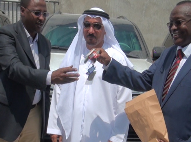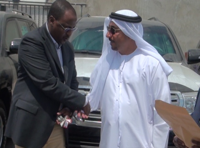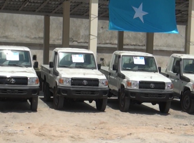 Sabti, November 16, 2013 (HOL) — Dowladda Imaaraadka Carabta ayaa ugu deeqeday dowladda federaalka Soomaaliya, 17-gaari oo isugu jiray 10 kuwa ciidamada ah, afar kuwa aysan xabbadu karin ee ay madaxda lagu qaado, laba dab-damis iyo hal ambalaas.
