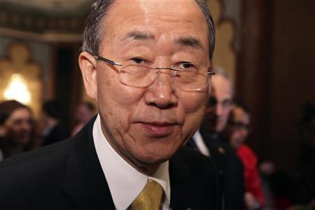 United Nations (U.N.) Secretary-General Ban Ki-moon leaves after a joint news conference with Arab League Secretary-General Nabil Elaraby following their meeting to discuss the situation in Gaza, in Cairo November 20, 2012. REUTERS/Asmaa Waguih