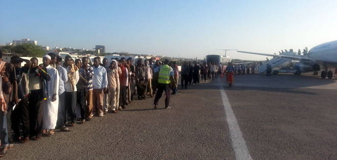 Somalis deported from Saudi Arabia arriving at Mogadishu Aiport - Photo HOL