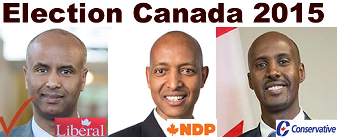 Unfortunately the other two Somali-Canadian candidates running for the federal election, Abdul Abdi of conservative riding of Ottawa West Nepean and Faisal Hassan of NDP riding of Etobicoke North have lost both with Liberal candidates.