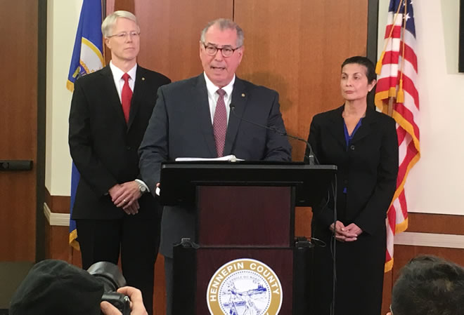 Hennepin County Attorney Mike Freeman speaks about the charges against Minneapolis police officer Mohamed Noor at a news conference on Tuesday, March 20, 2018 - JERRY HOLT, STAR TRIBUNE