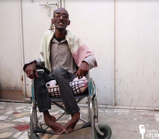 “I started off using crutches when my arms were strong, but later on my arms started getting weak, making it very hard for me to use the crutches, so I opted for a wheelchair,” Moulid told Radio Ergo.