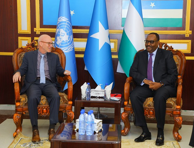 Mogadishu (HOL) - A senior UN delegation led by the Secretary-General’s Special Representative for Somalia, James Swan, travelled to Garowe on Monday to meet with Puntland’s President Said Abdullahi Deni and his regional administration. The two sides discussed political reconciliation, security, and humanitarian assistance.