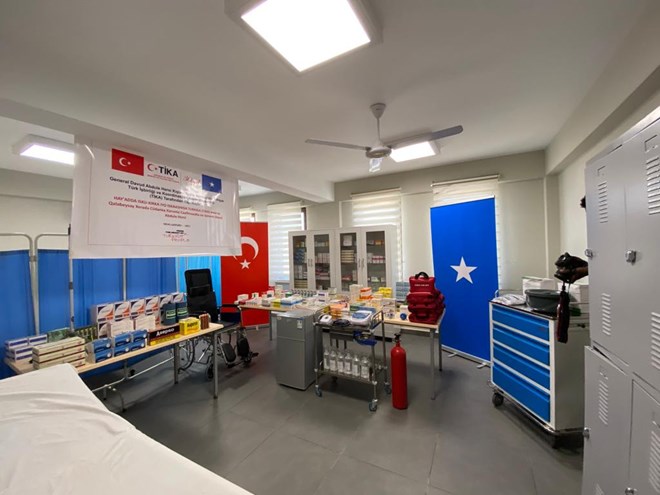 Turkish Cooperation and Coordination Agency (TİKA) built a health center (infirmary) in the General Daud Abdulle Hirsi Barracks in Mogadishu, the capital of Somalia, and provided medicines and medical equipment.