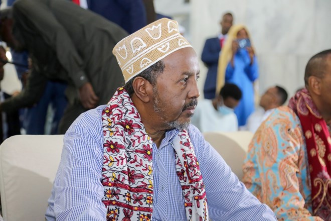 Mogadishu (HOL) - Somali President Hassan Sheikh Mohamud performed the Eid Al Adha prayer on Saturday morning alongside Prime Minister Hamza Barre, MPs, government officials and hundreds of people at the newly constructed Ali Jimale Mosque in Mogadishu.