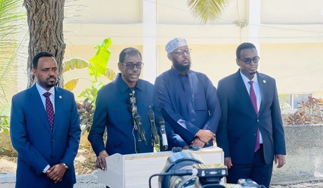 During a press conference in Mogadishu on Saturday, Deputy Minister of Information Abdirahman Adala, Minister of Internal Security Abdullahi Sheikh Ismail Fartaag, Minister of Religious Affairs Mukhtar Ali Robow, and Attorney General Suleiman Mohamed Mohamud reiterated the government's commitment to prosecuting individuals and networks funding terrorism.