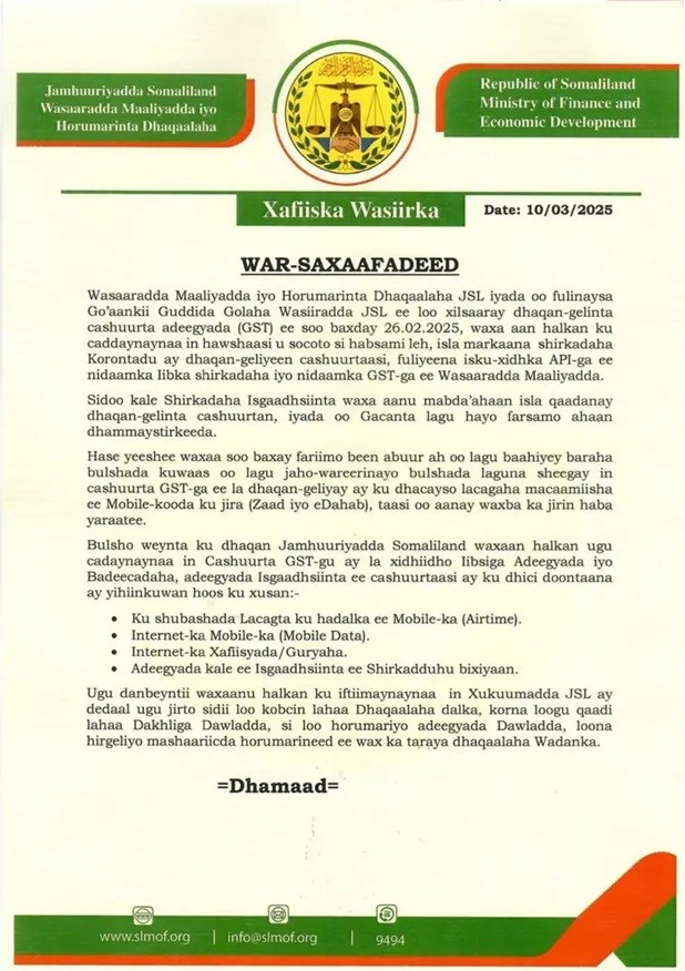 The policy has sparked debate over its long-term impact on Somaliland’s economy. While officials tout it as a necessary step toward fiscal sustainability, critics argue it disproportionately affects low-income citizens.