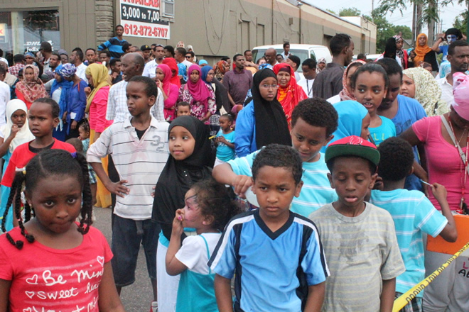 Munaasibadda dabaaldegga oo ka dhacday bartamaha wado dheer oo dhexmarta magaalada Minneapolis, ayaa waxaa isugu soo ururay dadweyne aad u fara badan oo ka kala yimid degmooyinka kala duwan ee gobolka Minnesota.