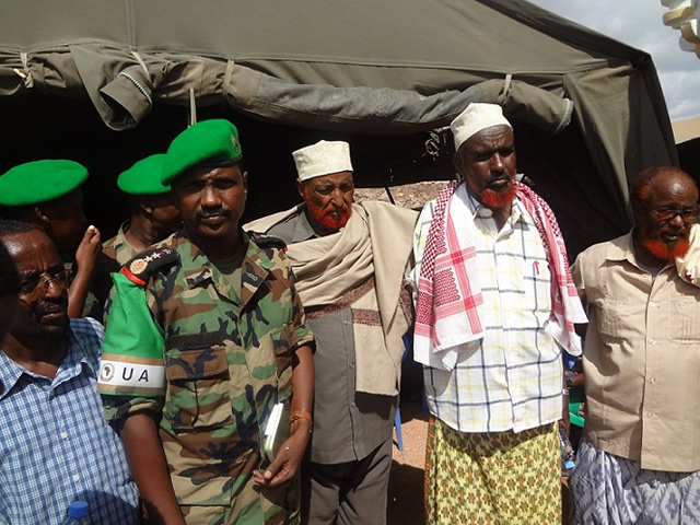 Sabti, Oktoobar, 20, 2012 (HOL) – Saraakiisha ciidamada midowgga Africa AMISOM ee ka socda dalka Jabuuti iyo odayaasha dhaqanka gobollka Hiiraan ayaa maanta kulan ku yeeshay magaalada Baladweyne.
