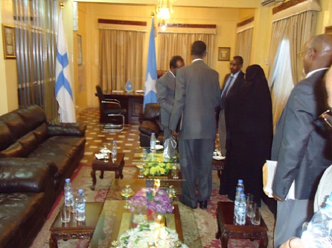 Isniin, Abriil 01, 2013 (HOL) — Wafdi ka socda dalka Finland ayaa maanta soo gaaray Muqdisho, iyagoo la kulmay mas’uuliyiinta dowladda oo uu ka mid yahay madaxweyne Xasan Sheekh Maxamuud, waxanaa kulanka oo ka dhacay xarunta madaxtooyada looga hadlay intiisa badan iskaashiga iyo xiriirka u dhexeeya Somaaliya iyo Finland.
