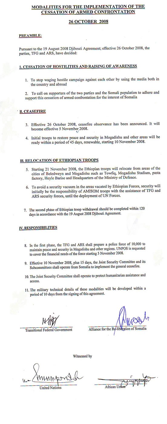 Modalities for the implementation of the cessation of armed confrontation