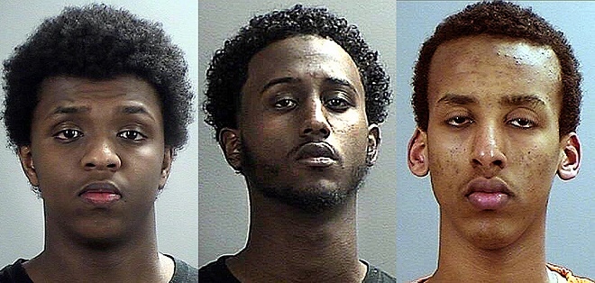 Three young men accused of trying to join the ISIS terror group are, left to right: Zacharia Abdurahman, Hanad Musse and Hamza Ahmed. Courtesy of Sherburne County Jail