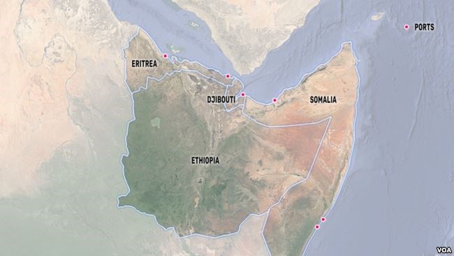 A map of ports in the Horn of Africa. Peace with Eritrea could give landlocked Ethiopia more access to the Red Sea.