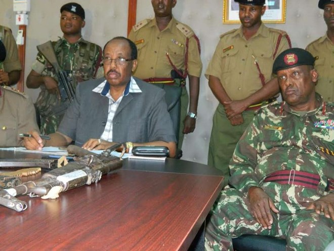 Northeastern regional commissioner Mohamud Saleh addressing the press after suspected al shabaab militia were arrested on January 5,2017.Photo file