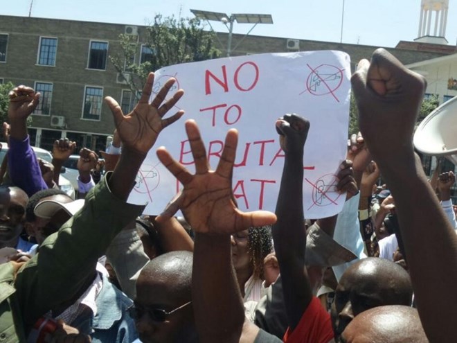 A group of teachers posted to Mandera, Garissa and Wajir protest outside Parliament on February 3 2015 over insecurity at their stations.