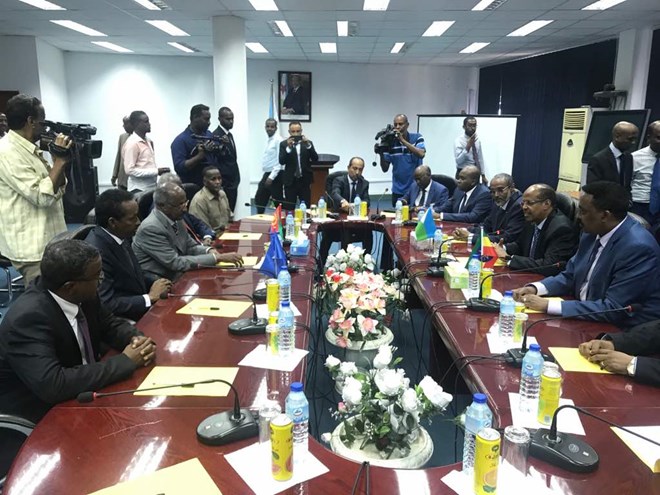 Saleh was accompanied by his Somalian counterpart Ahmed Isse Awad and Ethiopia's Workneh Gebeyehu who travelled to Djibouti to "advance dialogue" between the two nations, Ethiopian state media reported.