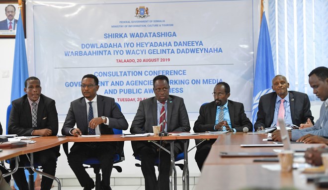 Mohamed Abdi Hayir, information, culture and tourism minister, in February launched the three-year National Strategy for Public Awareness 2018-2021 plan, which is centered on coordinated and aligned public awareness campaigns by Somali authorities, media houses, civil society groups and international partners.