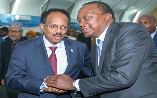 President Uhuru Kenyatta with Somali President Mohamed Abdullahi Farmaajo in Mogadishu, Somalia. [Standard]