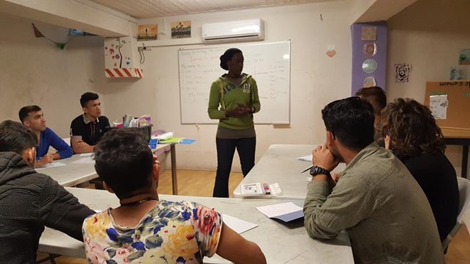 The Alpha Center is a community center run by one of the best-known NGOs reaching out to migrants on the island, Samos Volunteers. The place is bustling with activity. Hundreds of asylum seekers come here daily, to find some comfort, leisure activities, but also legal advice, and language courses.