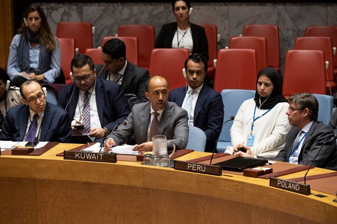 mission at the UN, Ambassador Plenipotentiary, Bader Almunaykh, addressing a Security