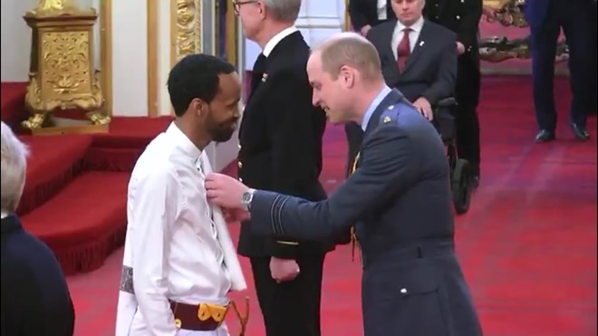 Donning a traditional Somali outfit, Matan accepted his award from Prince William.