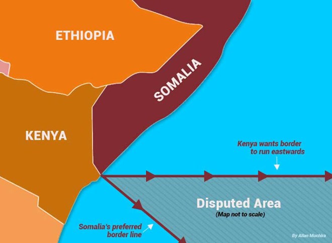 In contrast, Kenya claims the border should take a roughly 45-degree turn at the shoreline and run in a latitudinal line.