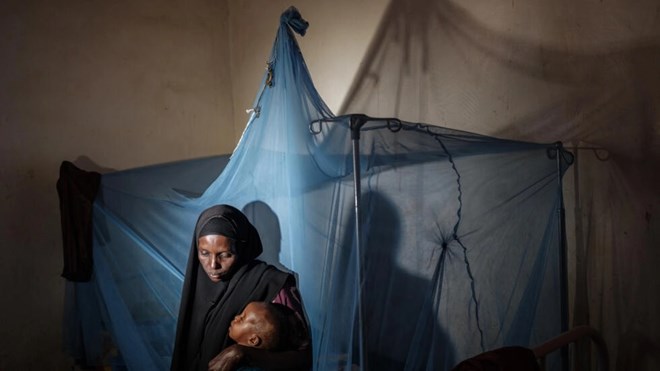 Somalia crisis: Maimun Ali, 31, clutches her two-year-old child at a malnourishment centre in Baidoa © YASUYOSHI CHIBA / AFP