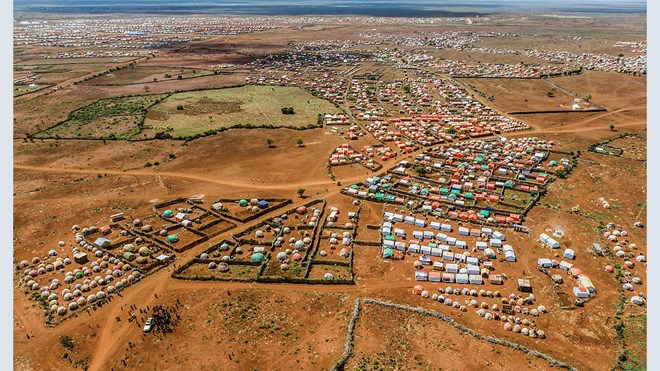 The Kaam Jiroon camp for the internally-displaced is seen from the air in Baidoa, Somalia, Wednesday, June 15, 2022. An unprecedented fourth failed rainy season with catastrophic hunger, disease and displacement has forced Somalia into a climate crisis, the Norwegian Refugee Council's Secretary General Jan Egeland warned Thursday, June 23, 2022. (Abdulkadir Mohamed/Norwegian Refugee Council via AP)