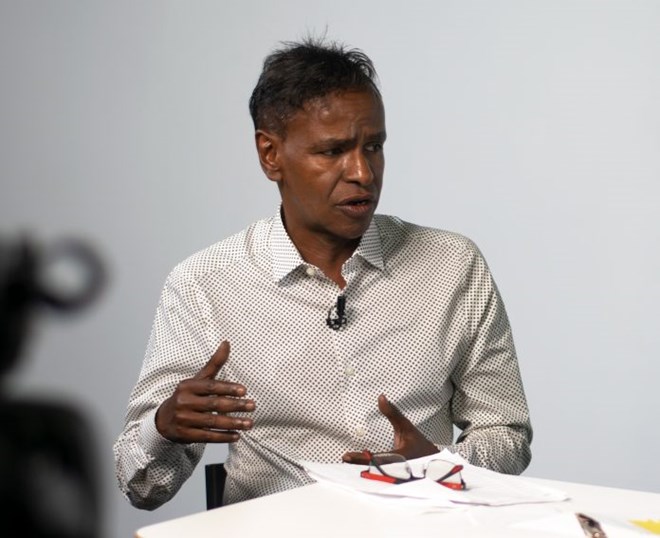 Abdirizak Bihi On October 12, 2021 during a live telecast of a Mshale candidate interview for the Minneapolis Sixth Ward race. U.S. Citizenship and Immigration Services (USCIS) announced this week that Mr. Bihi is one of eight people across the United States selected for the first-ever citizenship ambassador initiative. Photo: Paul Okelo/Mshale