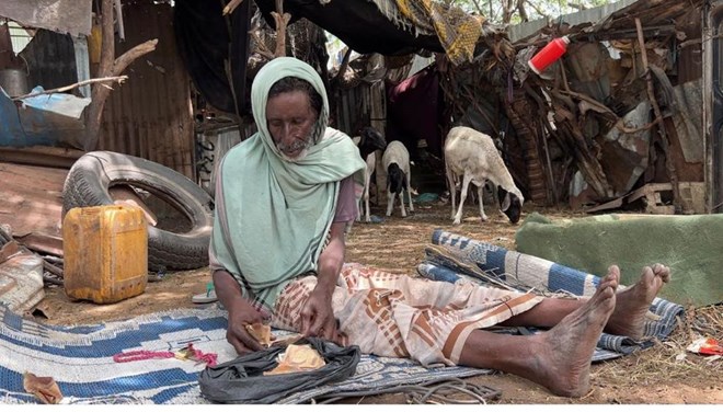 Jalif Farah Shurie lives in subhuman conditions because he has been disowned by his community for having HIV after his wife, raped by armed men, infected him with the virus. FARHIO MOHAMED HASSAN