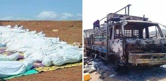 State news agency Sonna reported that al Shabaab fighters had burnt trucks carrying relief food to Mahas and "killed most of the people on board the vehicles."