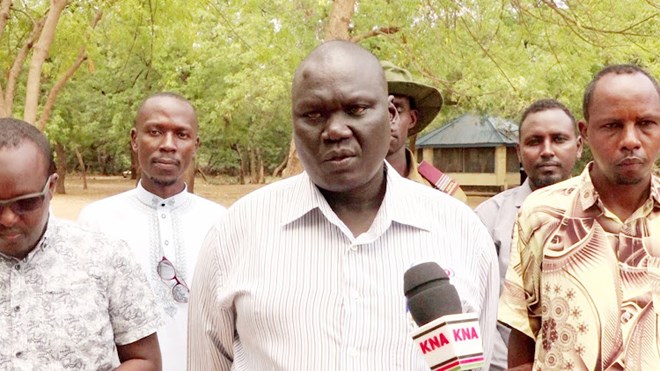 Garissa Township Deputy county commissioner Solomon Chesut addresses the press after meeting with sub county security and intelligence committee /KNA