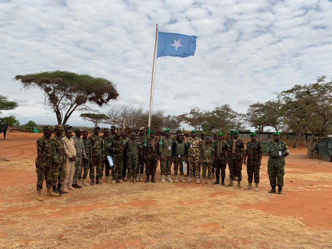 FILE - The Somali National Army and ATMIS forces during a handover ceremony at the Geriley base at Elwaq district in Gedo region on June 30, 2023.
