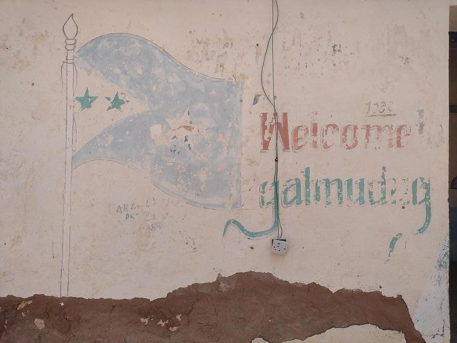 A sign painted on the wall of a government building in Adado, Galmudug state, central Somalia. November 2022. CRISIS GROUP / Omar Mahmood