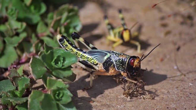 Banner image: The desert locust thrives in arid and semi-arid parts of Africa, the Middle East and Asia, stretching from West Africa to the Thar Desert in India. Image by Paul Korecky via Wikimedia Commons (CC BY-SA 2.0).