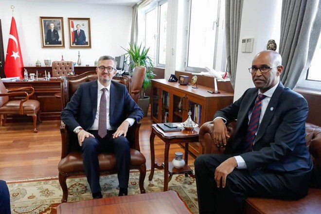Assistant Minister of the Türkiye Foreign Affairs Ministry, Burhanettin Duran (left) during a meeting with Somalia's Ambassador to Ankara Fathudin Ospite. Image: HANDOUT