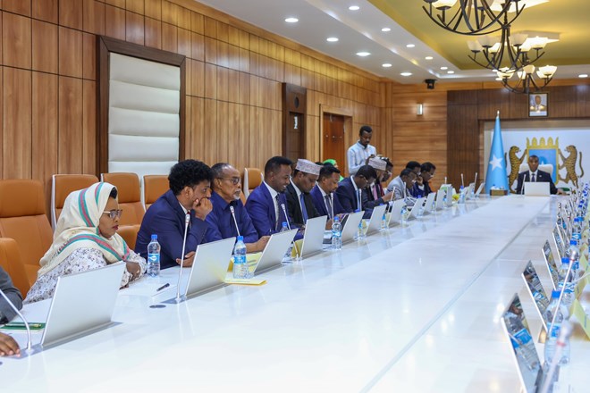 At a weekly Cabinet meeting chaired by Prime Minister Hamza Abdi Barre, the government prioritized national security and sovereignty, urging Somalis to reject actions that could cause division. Barre emphasized the need for political stability and collective action to combat extremist groups threatening Somalia's future.advertisements