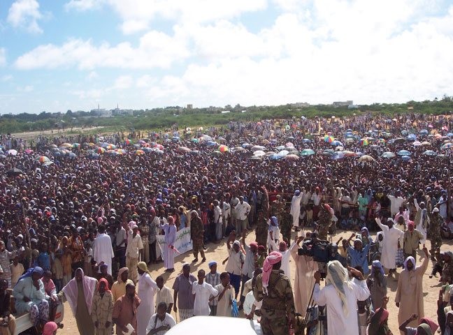 "Dalka wuxuu u baahan yahay difaac iyo in naf iyo maal loo huraa, dhamaan ganacsatadana waa in ay maalkooda iyo hubkooda ay ku bixiyaan Jihaadka"ayuu yiri Shiikh Shariif Shiikh Axmed oo ugu baaqay Dad Soomaali ah oo uu sheegay in ay Itoobiyaanka la safan yihiin ay soo raacaan walaalahooda Soomaaliyeed, "Meles Zenawi maanta haddii uu idinku shaqeysto berri ayuu idinku soo jeesanayaa, xukunna idin gaarsiin maayo ee dadkii dhinac ka soo raaca"ayuu hadalkiisa ku sii daray Shiikh Shariif Shiikh Axmed Guddoomiyaha Guddiga Fulinta Maxkamadaha Islaamka oo Fagaaraha Tareebuunka kula hadlay dadweyne isugu soo baxay.