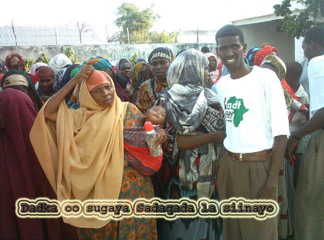 Talaado, October 24, 2006(HOL): Boqolaal Qoys ayaa Salaadda Ciida ka hor Muqdisho loo qeybiyey lacago loogu talo galay Zakaatul fitriga oo ay ku deeqday Hay'adda Gargaarka Afrika, si ay ugu ciidaan Qoysaska ku dhibaateysan Xeryaha dadka soo barakacay ee Muqdisho.