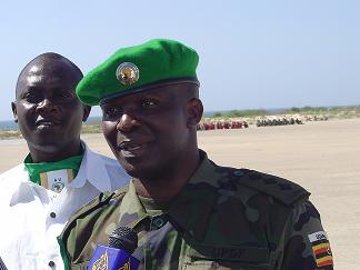 Intii ay socotay Xafladdii soo dhaweynta ahayd ee loo sameeyay Ciidamada ka socday Dowladda Uganda ayaa Wakiilka Midowga Afrika Mr. Maxamed Cali Foam lagu wareejiyay Calankii ay wateen Ciidamada Uganda ee, iyadoo uu Ambassador Foam-na ku wareejiyay Hoggaanka Ciidamada Uganda Calanka Midowga Afrika, waxayna taasi muujineysaa in Ciidamada Uganda ay ku shaqeyn doonaan amarka Midowga Afrika.
