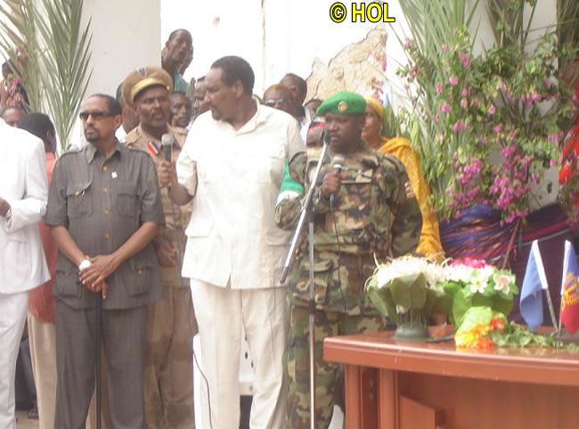 Jimco, May 04, 2007(HOL:) Xaflad lagu caleemo saarayay maamulka cusub ee gobolka Banaadir ayaa maanta lagu qabtay magaalada Muqdisho, iyadoo xafladdaasina ay ka qeybgaleen mas’uuliyiin ka socotay dowladda dhexe ee Soomaaliya, kuwaasi oo uu horkacayay Ra’iisal Wasaare Cali Maxamed Geedi, iyadoo ay sidoo kalena ay xafladda ka qeybgaleen mas’uuliyiin ka socday Dowladda Hoose, halka ay goob joog ka ahaayeen Saraakiil ka socday Ciidamada Dowladaha Itoobiya iyo Uganda ee Muqdisho jooga.