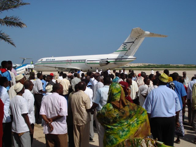 Meydka Marxuumka ayaa waxaa garoonka Diyaaradaha Muqdisho geysay Diyaaradda Africa Airways, waxaana la socday Ehellada Marxuumka, gaar ahaan Caruurtiisa oo ka soo kala raacay Qaahira iyo Dubai.