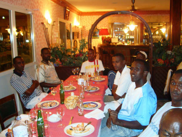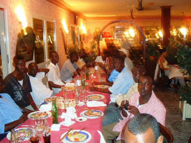 Talaado, May 26, 2009(HOL): Wafdiga iyo ciyaartoyda ka socota Naadiga Isboortiga Dekedda Muqdisho ayaa xalay casho sharaf si heer sare ah loo soo agaasimay waxaa u sameeyay Maareeyaha Dekedda Jabuuti Mr. Sacad Cumar Geelle, iyadoo casho sharaftaasi ay ka soo qeyb galeen madaxda wafdiga iyo ciyaartoyda Naadiyada labada Dekedood ee Soomaaliya iyo Jabuuti.