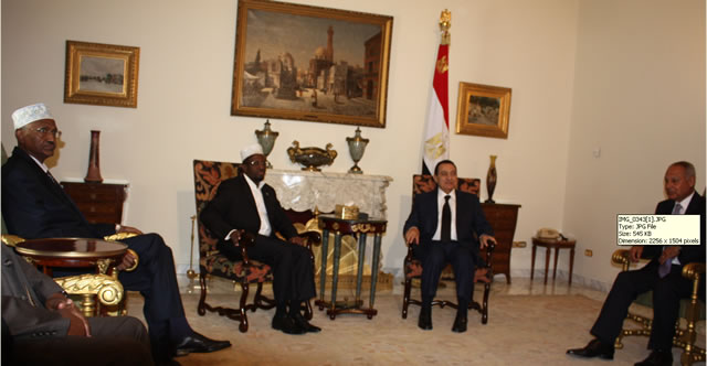 Kulanka labada madaxweyne oo ay goobjoog ka ahaayeen Wasiirrada Arrimaha Dibadda, waxayna uga hadleen xaaladda dalka Soomaaliya uu ku sugan yahay, iyadoo Madaxweyne Sheekh Shariif uu ka codsaday Madaxweynaha Masar inuu gacan ka geysto sidii Soomaaliya nabad loogu soo dabbaali lahaa.