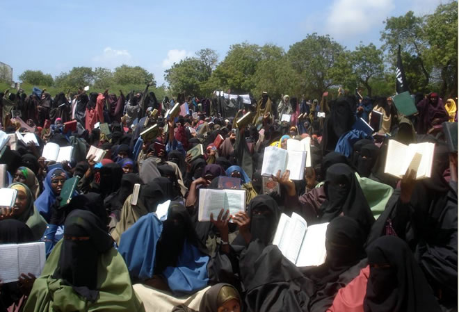 Mudaaharaadyadii ugu badnaa oo rag, dumar iyo caruur sitay Kitaabka Qu'aanka ay ka qaybgaleen ayaa ka dhacay Muqdisho, waxaana hadal ka jeediyay Afhayeenka Xarrakatul Shabaab Sheekh Cali Maxmauud Raage (Sheekh Cali Dheere).