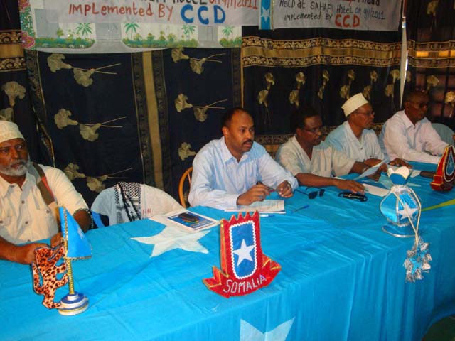 Talaado, Janaayo 04, 2011 (HOL) – Siminaar halku dhigiisu ahaa ‘xageen ka nimid xageense u soconaa’ oo ay soo qabanqaabisay hay'adda wadahadalka bulshada ee CCD ayaa maanta lagu qabtay Hotel saxafi ee magaalada Muqdisho, waxaana ka qaybgalay in ka badan boqol ruux oo ka kala socday qaybaha kala duwan ee bulshada, sida ururada bulshada rayidka, xildhibaano, waxgarad iyo odayaal-dhaqan.